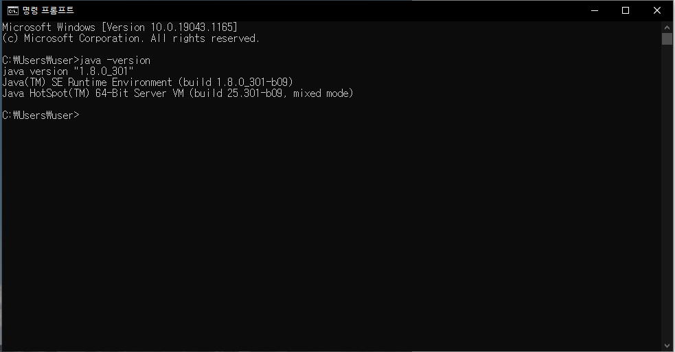 JDK가 설치가 완료 되었으면 콘솔을 켜서 java -version 을 입력해서 위 사진처럼 나온다면 성공적으로 설치가 완료되었습니다.